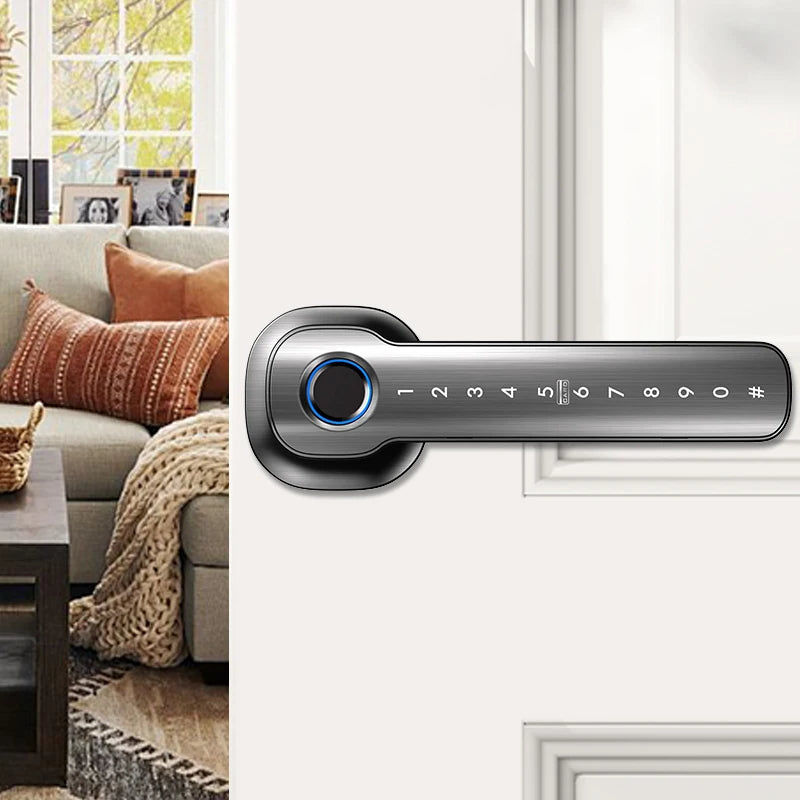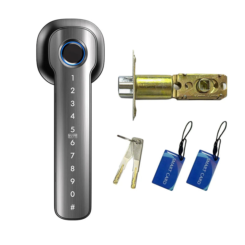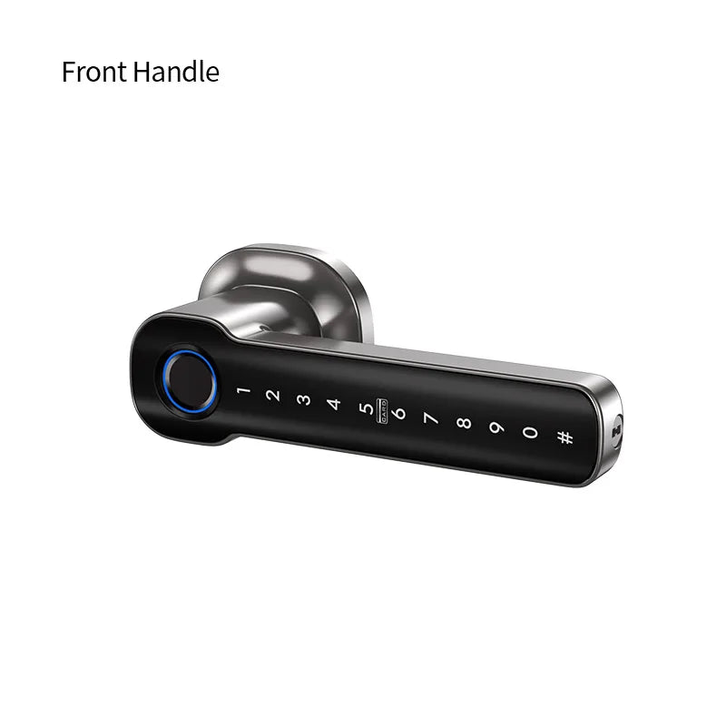 This smart handle fingerprint lock is designed with advanced security features and intuitive functionality, offering a modern solution for residential and commercial entry systems.